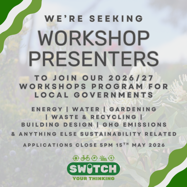 Switch Your Thinking is an initiative of the City of Armadale, City of Gosnells and the Shire of Serpentine Jarrahdale that provides information and support to 14 Councils across the Perth region.