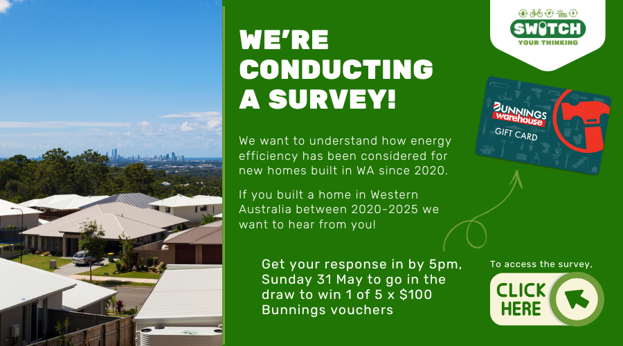 Switch Your Thinking is running a community energy efficiency program (formerly known as the Energy Efficiency Pilot Program) through 74 local governments and community resource centres across WA, with support from Energy Policy WA in the Department of Energy and Economic Diversification. The program provides households and businesses access to relevant, accessible energy efficiency education to influence behaviour change leading to improved energy literacy and corresponding reductions in energy use and bills. Energy audit kits are available for loan from 130 locations around WA.Â