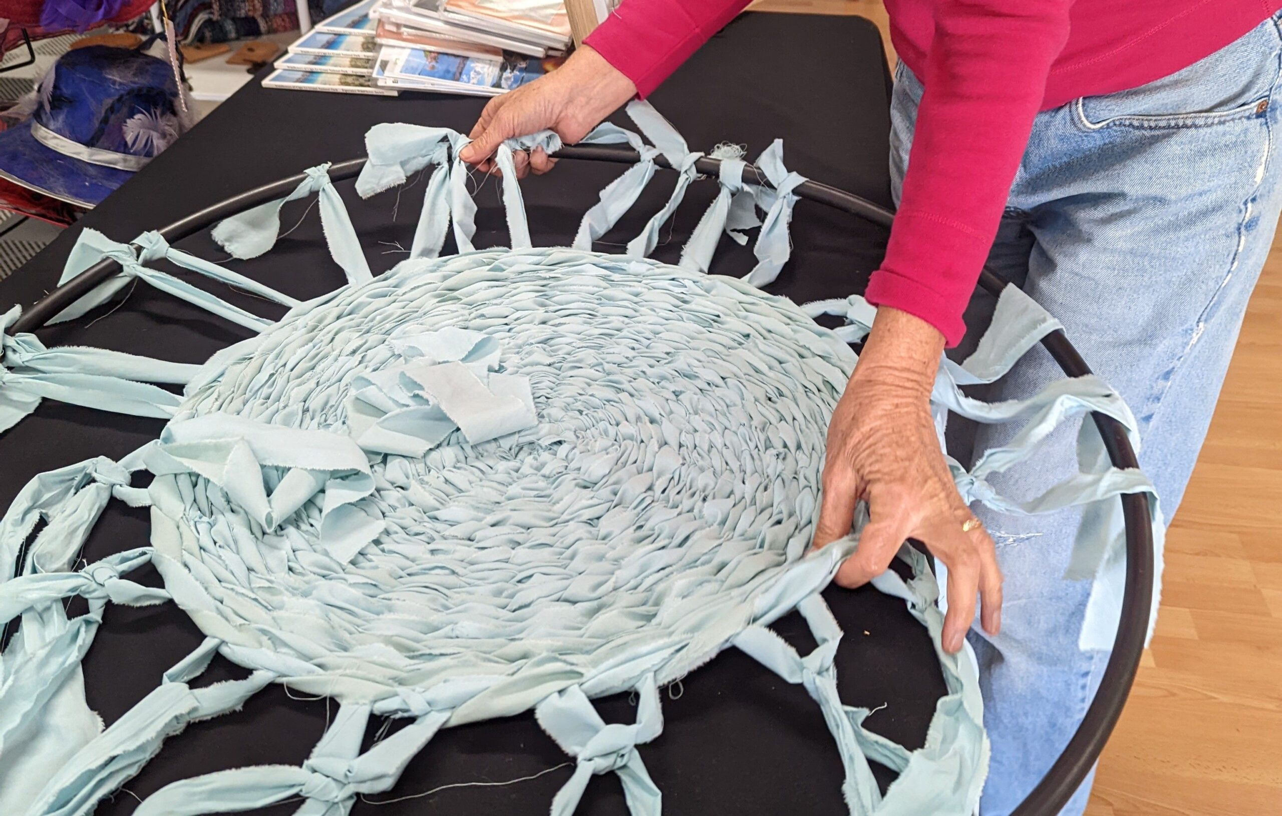 Create a unique rag rug from old textiles in this fun, hands‑on workshop for young people, using simple weaving techniques with repurposed fabrics and hula hoops.