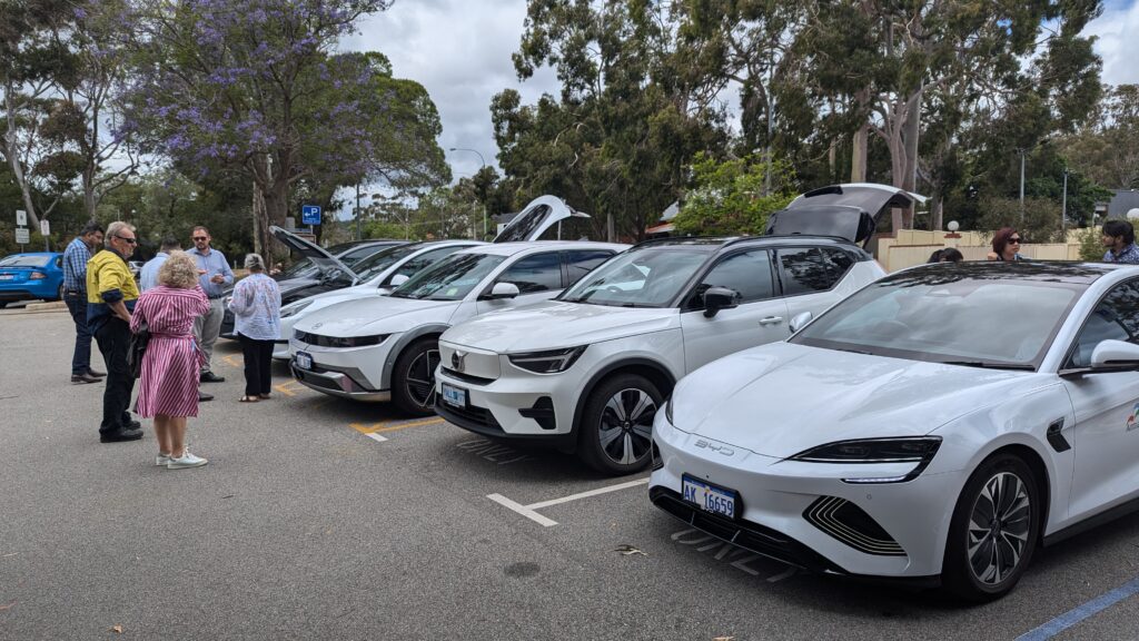 In November 2024, Switch Your Thinking (SYT) hosted two lunch and learn sessions for the staff at the City of Gosnells and the City of Armadale on BEVs. There was a display of a combination of corporate fleet and privately owned BEVs at both events such as the MG Excite 51, MG X Power, MG ZS, and BYD Seal at the Gosnells event. The Armadale event displayed a Hyundai Ioniq 5, BYD Seal, Volvo XC 40, and two Tesla Model Ys. It was a great opportunity for staff at both LGAs to come down and talk with colleagues who have either taken the plunge and invested in their own BEV or drive one of the BEVs in the corporate fleet. There was a good turnout with over 30 staff from both LGAs keen to learn more about the experience of owning/driving an EV.